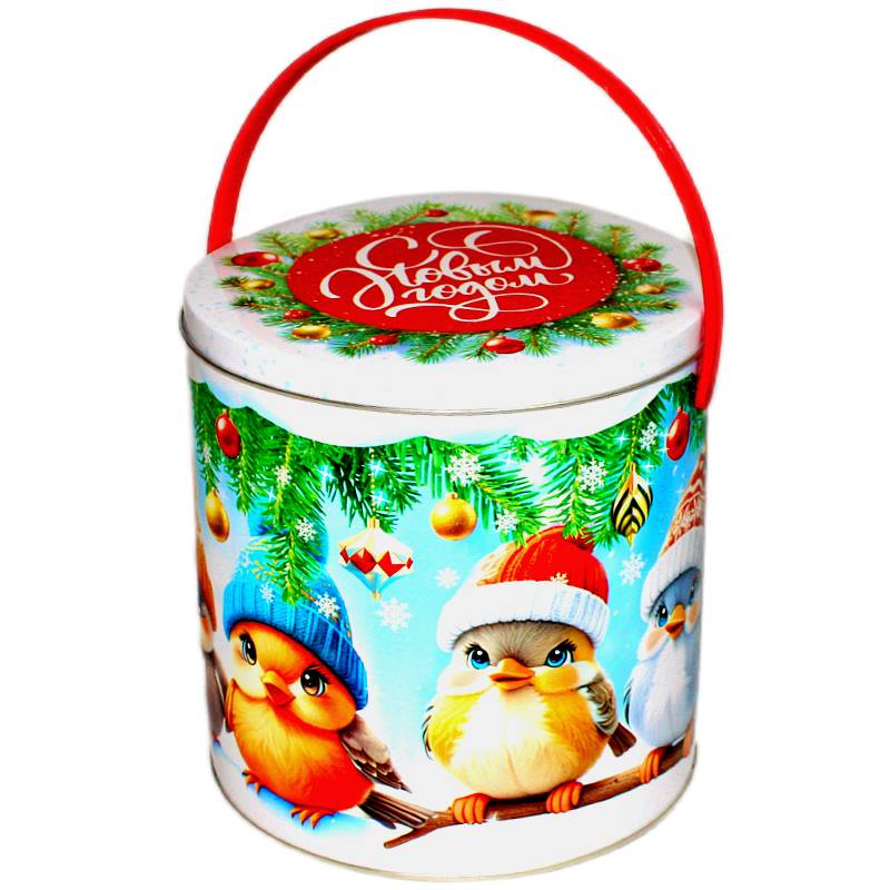 Сладкий подарок на Новый Год в жестяной упаковке весом 1000 грамм