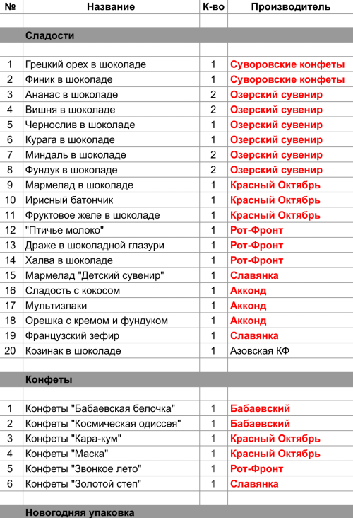 "Птичье молоко" (1 шт), Драже в шоколадной глазури (1 шт), Халва в шоколаде (1 шт), Конфеты "Звонкое лето" (1 шт)