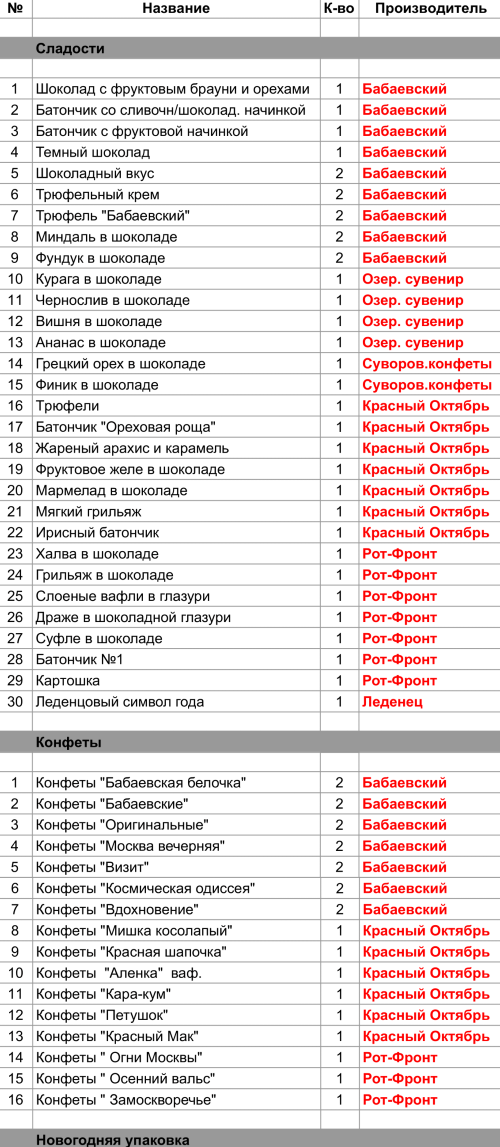 1. Проверить, можно ли внести изменения в состав подарка. Если нет, то скорее всего наборы были собраны еще летом из конфет, произведенных еще раньше